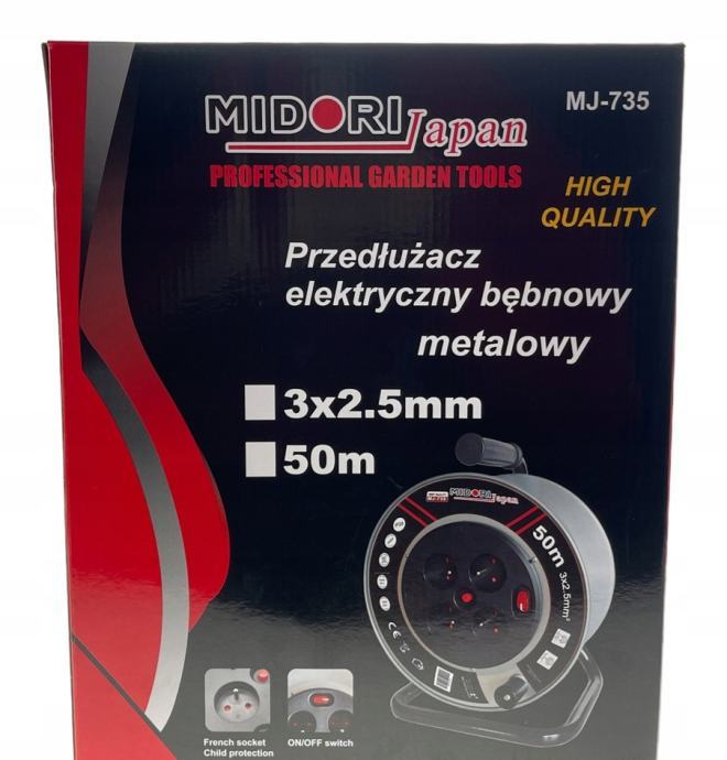 Produžni kabel na metalnom kolutu Midori Japan duljine 50 metara (3×2,5mm) je pouzdan i učinkovit električni alat koji osigurava dugotrajnu i sigurnu opskrbu električnom energijom na različitim mjestima. Proizveden od strane renomirane tvrtke Midori Japan, ovaj produžni kabel savršeno je rješenje za profesionalce i kućne korisnike kojima je potreban pouzdan izvor napajanja.