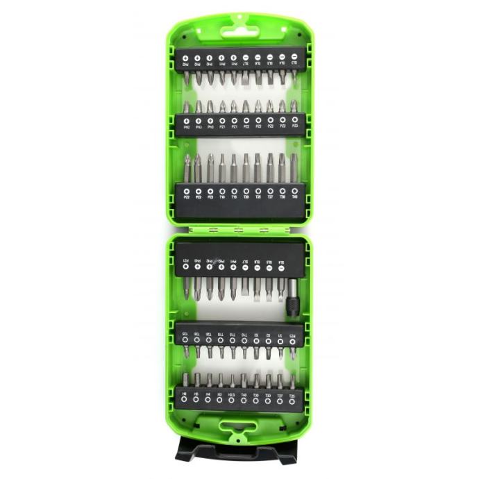 Profesionalni set bitova raznih veličina. Zbog svoje trajnosti, pouzdanosti, preciznosti izrade, visokokvalitetnih materijala, modernih građevinskih rješenja i drugih prednosti zasigurno će zadovoljiti zahtjevne korisnike. Cjelina je zatvorena u prikladnom paketu koji omogućava brzi pregled dostupnih alata.