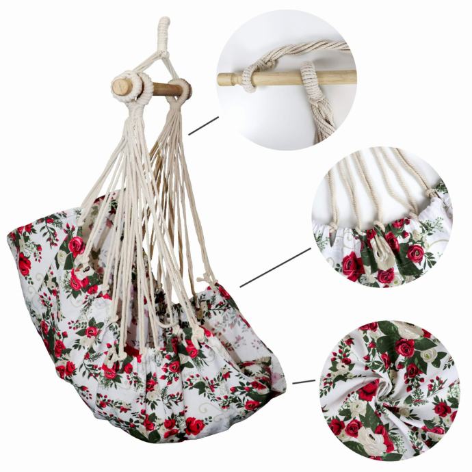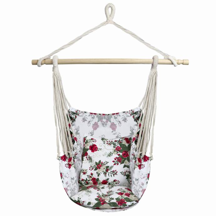 S ovom visećom / ljuljačkom stolicom, možete uživati u lijeno poslijepodne ili prekrasnu večer pod zvijezdama u svom vrtu,na balkonu ili dvorištu. Možete ga ponijeti na plažu, na kampiranje ili na bazen za opuštanje i sunčanje! Viseća mreža je izrađena od izdržljive i jake poliesterske tkanine punjene pamukom.